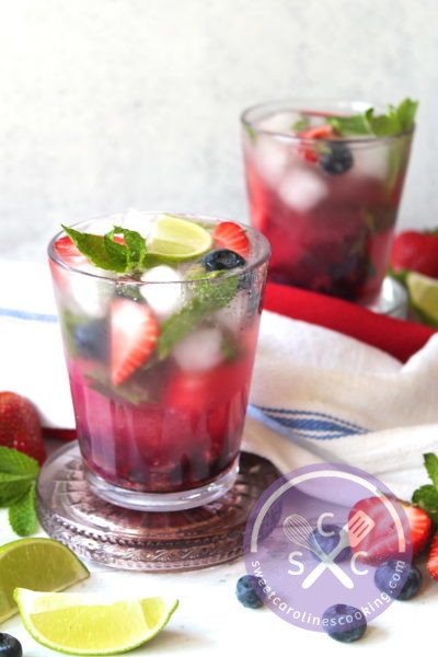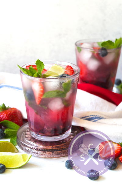 - Garnish with additional blueberries, mint leaves, a lime wedge and sliced strawberry (for color), if desired.
