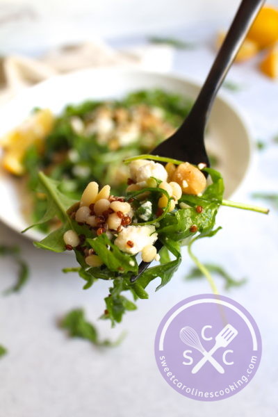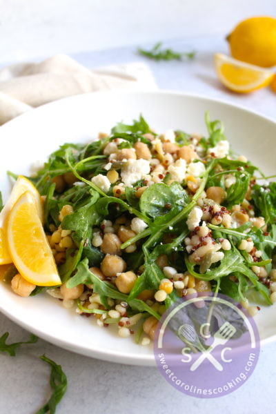 Since work has been so busy lately, I haven’t been able to spend as much time in the kitchen. That’s when easy recipes like this arugula and couscous salad come to the rescue. The salad is extremely simple, healthy and delicious. If you’d like to add some protein, grilled chicken or shrimp would be delicious on top!