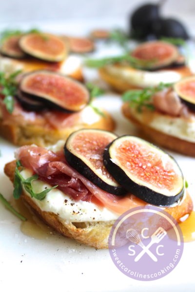fig, prosciutto & whipped ricotta crostini