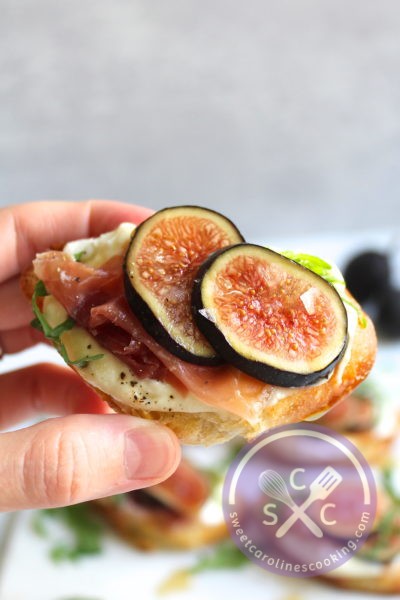 In my opinion, you can’t go wrong with crostini – mainly because bread and cheese are typically involved. This crostini is not only easy on the eyes, but it’s delicious, as well. The creamy ricotta paired with the buttery prosciutto and crispy garlic bread is a winning combo. This would make for a great appetizer or in my case, a delicious lunch. I couldn’t let these go to waste after photographing them!
